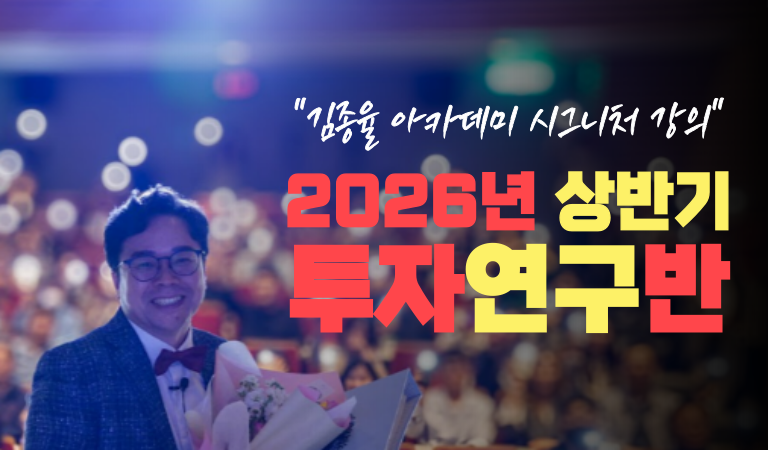 [정규강의] 김종율원장님 「2026년 상반기 투자연구반」 (2.5배수) 2026.01.08 17:00 ~ 2026.07.31 23:59일 -