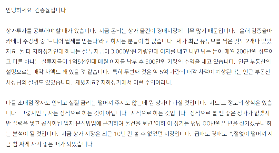 ★ 이 페이지는 김종율닷컴에서 수강하시는 온라인반 입니다.
