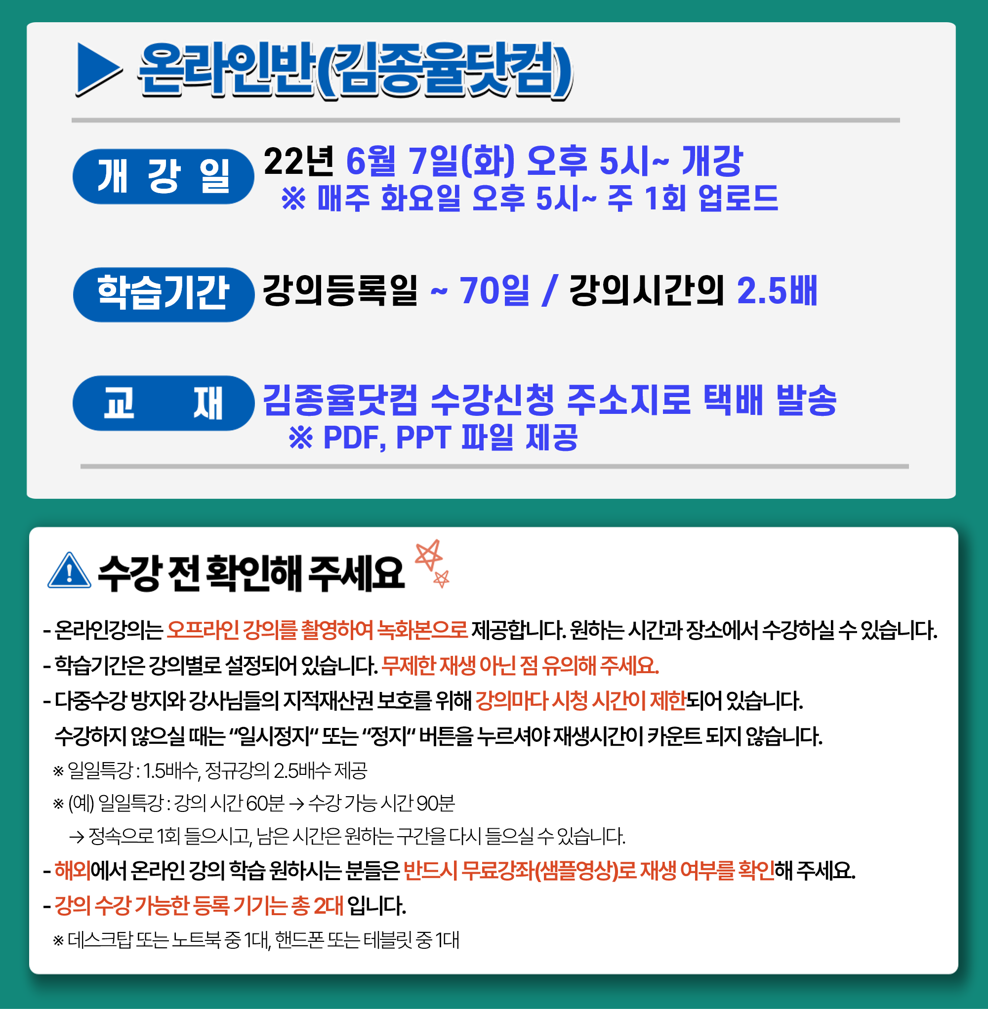 | 단원 | 강의명 | 강의시간 | 자료 | 샘플보기 |