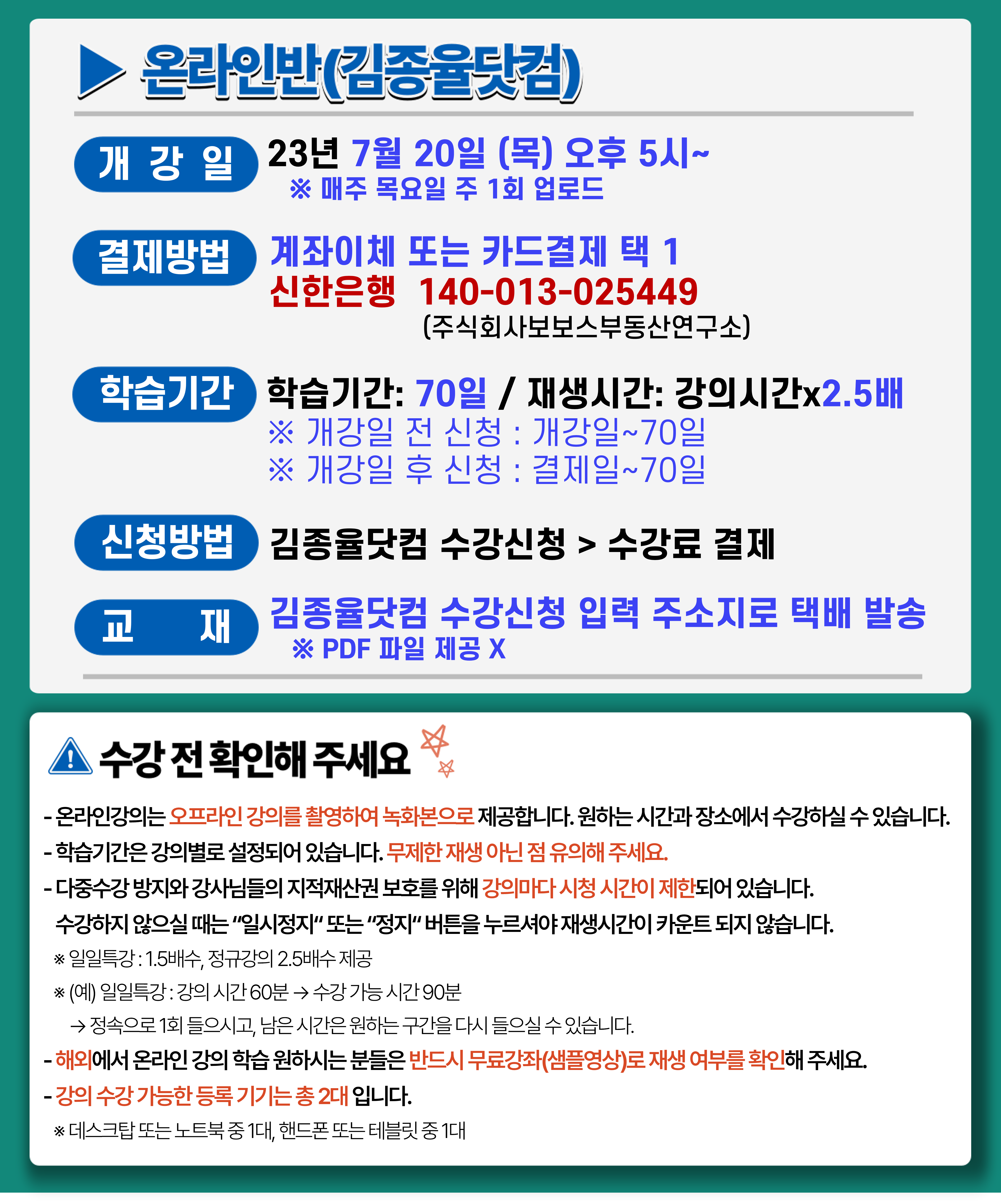 ★ 김종율닷컴에서 수강하시는 온라인강의 입니다.